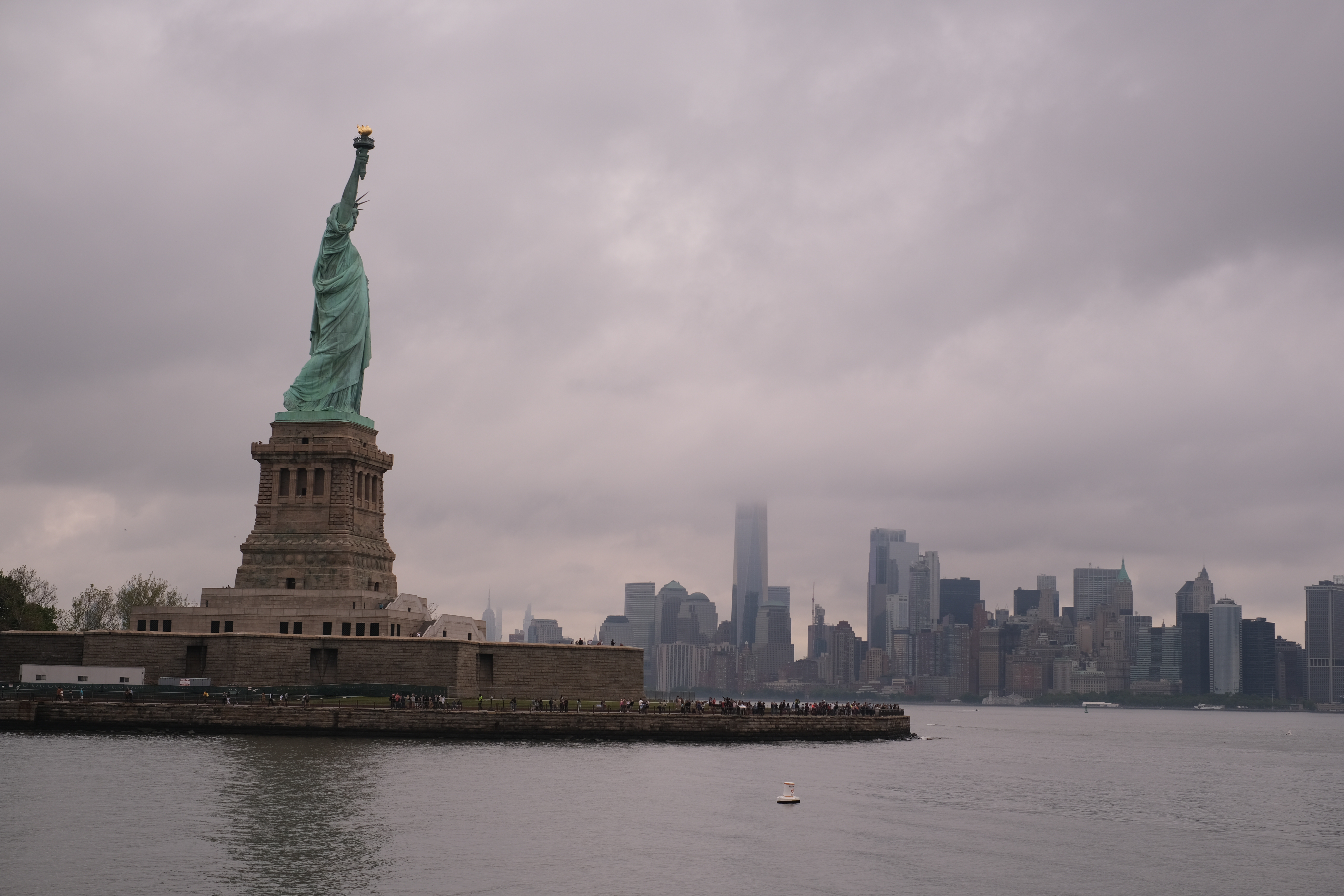 The Statue of Liberty is very majestic from a distance, as it looks over the city.