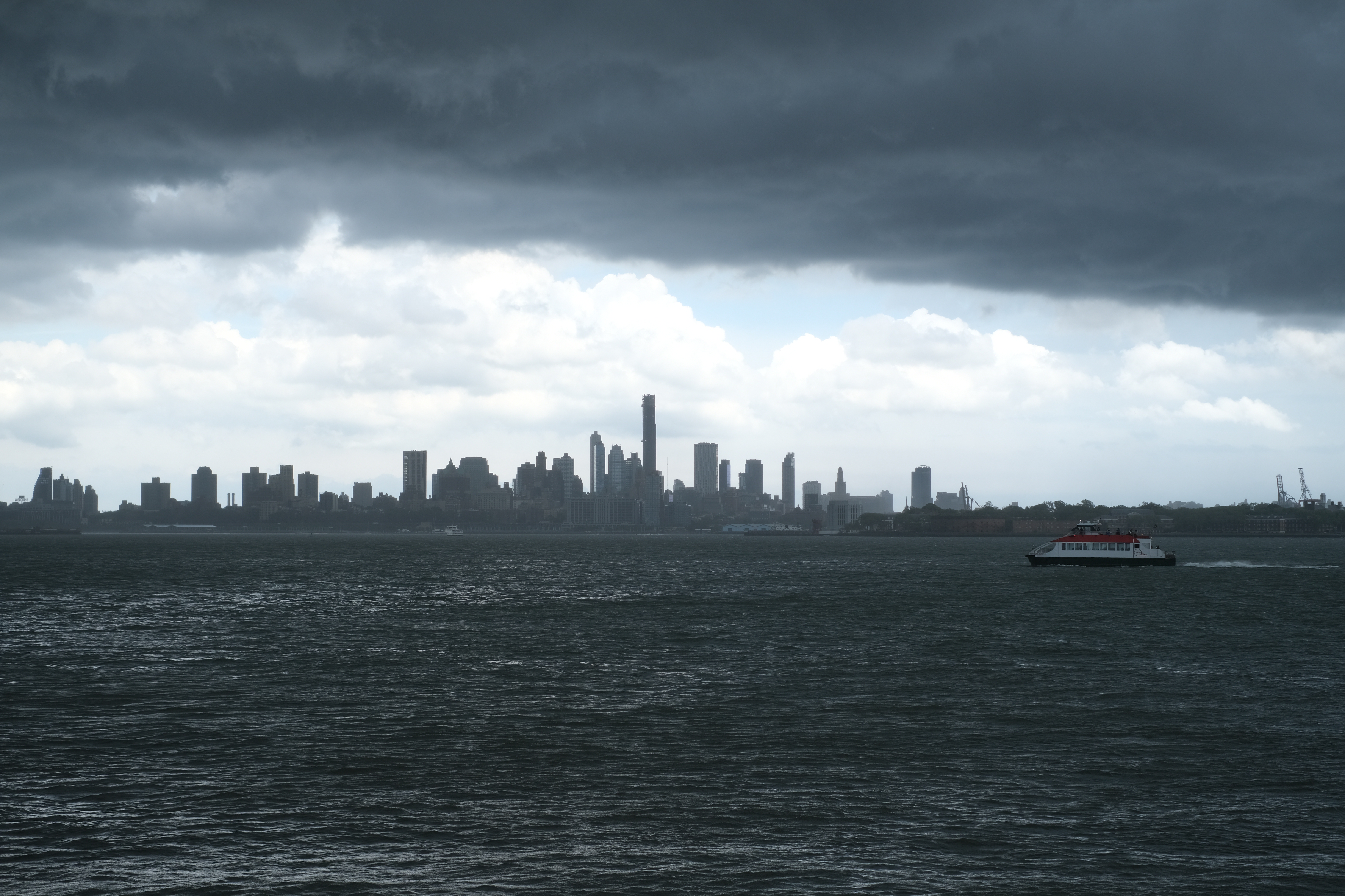 I braved the pelting rain to get this (in my opinion) really cool photo of a ferry sailing through the rain.
